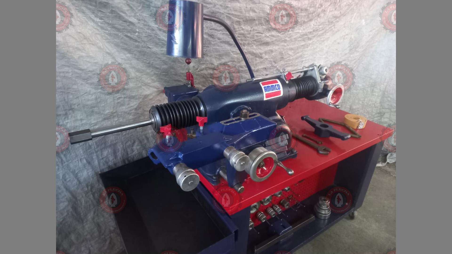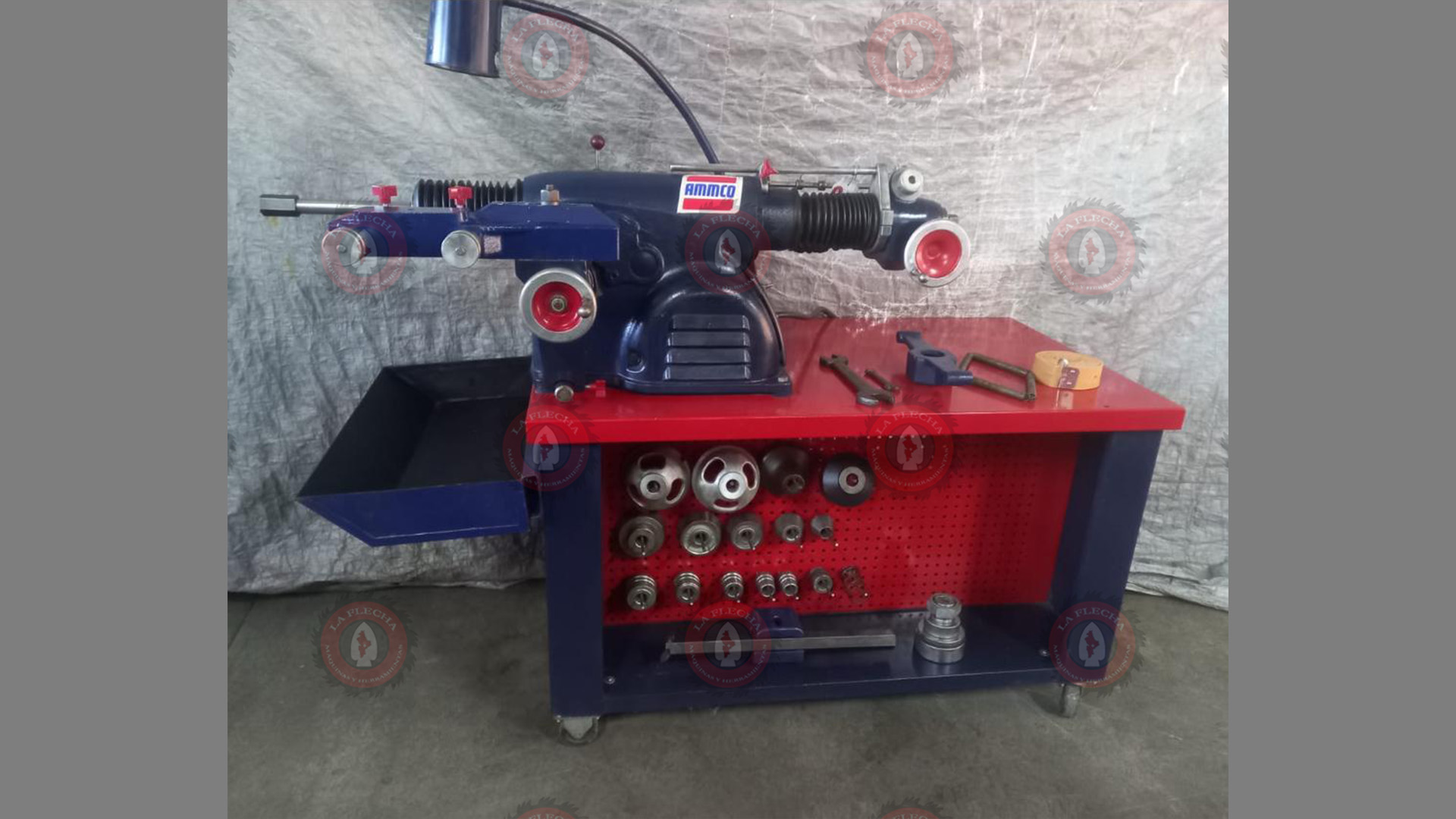 Incluye set de aditamentos, adaptador centrador rápido AMMCO, llaves originales AMMCO, bandas silenciadoras para discos y tambores, banco original marca AMMCO con sus ganchos para aditamentos y charola para recolectar rebaba.